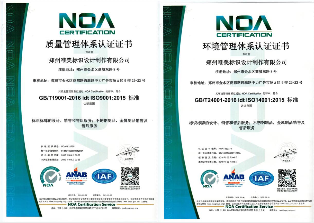 生產(chǎn)制作的每一件產(chǎn)品的原材料嚴格按照國家標準執(zhí)行,產(chǎn)品質(zhì)保最長10年;免費上門服務(wù)、免費深化標識設(shè)計方案、免費鄭州市內(nèi)送貨上門;口碑廣為流傳、70%客戶來自于老客戶轉(zhuǎn)介紹;